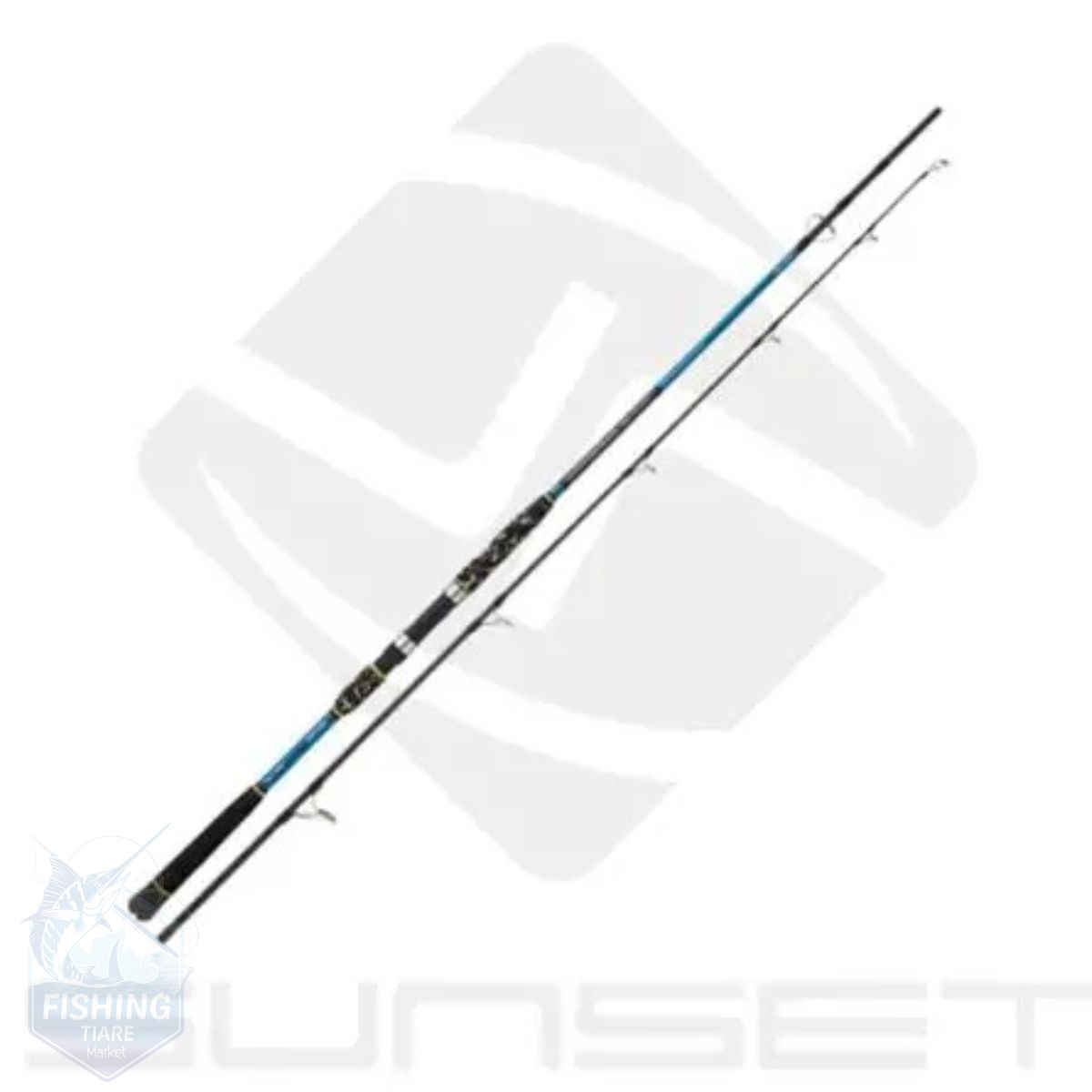 Les cannes SUNSET EMOTION SW20 possèdent un blank en deux éléments égaux en carbone “Technifibre” 24T, un cardan en caoutchouc, une double poignée en mousse EVA noire et camou, un porte-moulinet tubulaire argenté, des anneaux ligaturés anti emmêlement “K Frame” SiC, un scion creux et un étui en nylon.